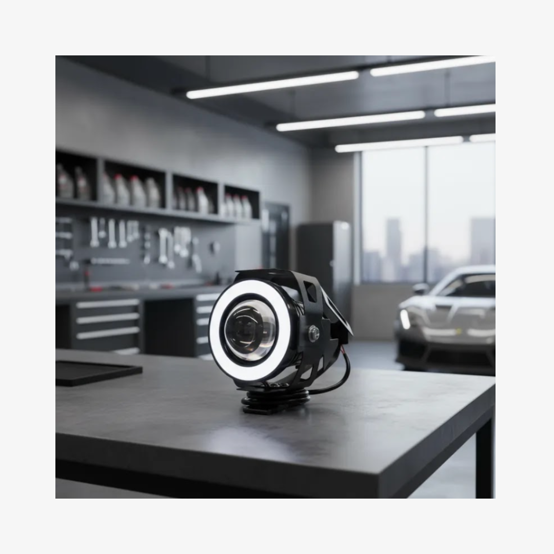 Diseñadas para mejorar tu visibilidad y transformar la estética de tu vehículo, proyectan luz blanco frío de 6.000K con lupa focalizada y ojo de ángel intercambiable en azul, rojo y verde.