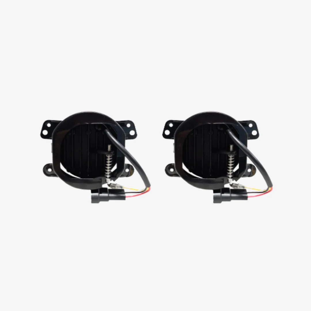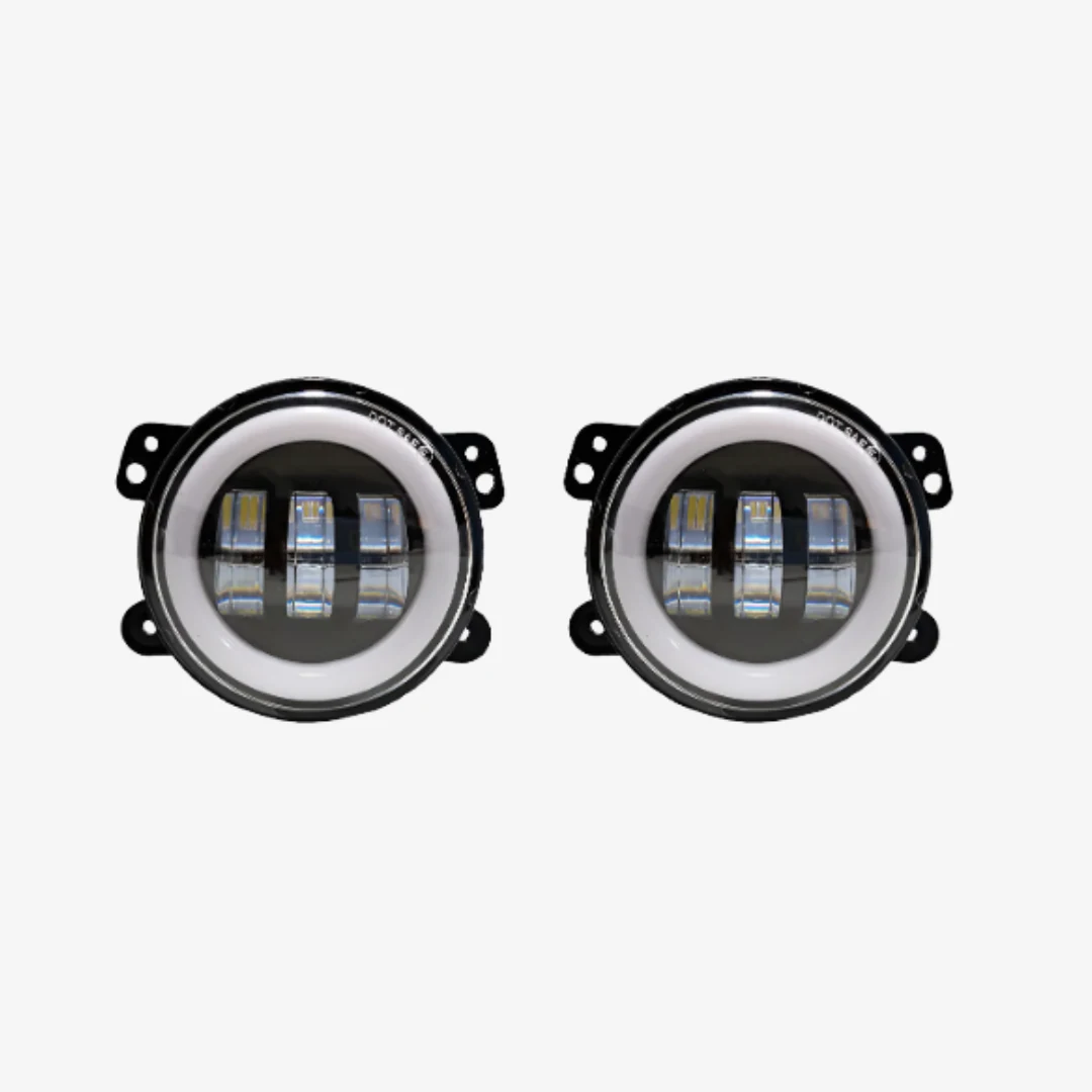 Neblinero LED redondo diseñadas para incrustar/empotrar en carrocería. Proyectan luz blanco frío (6000K) y antiniebla amarilla (3000K), con ojo de ángel intercambiable entre blanco y amarillo. Cada unidad cuenta con 9 LED (18 en total), consumo de 30W, y compatibilidad con 12V y 24V. Medidas: 10,5 × 10,5 cm (3.7 pulgadas). Apta para carro, moto, camioneta, bus, camión, 4x4 y Jeep. Conector universal, diseño elegante, alta visibilidad.