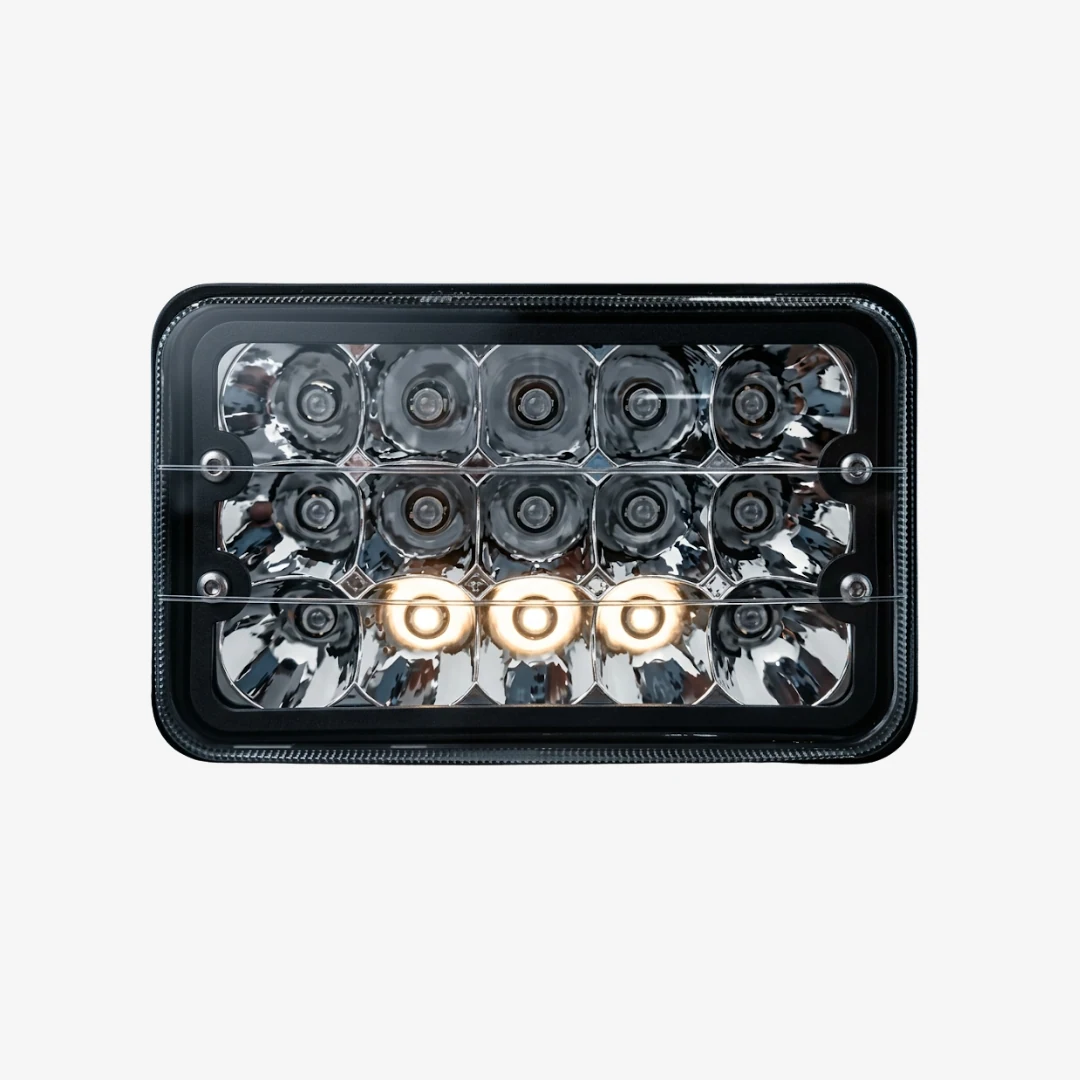 Farola LED rectangulares tipo Kenworth con ojo de ángel, ideales para mejorar la visibilidad y el estilo de tu vehículo. Ofrecen luz blanco frío de 6000K, funciones de altas y bajas, y están disponibles con ojo de ángel amarillo azul o rojo, conector H4, 10000 lúmenes, consumo de 45W y compatibilidad con 12V y 24V. Son aptas para carro, moto, camioneta, bus, camión, 4x4 y Jeep.