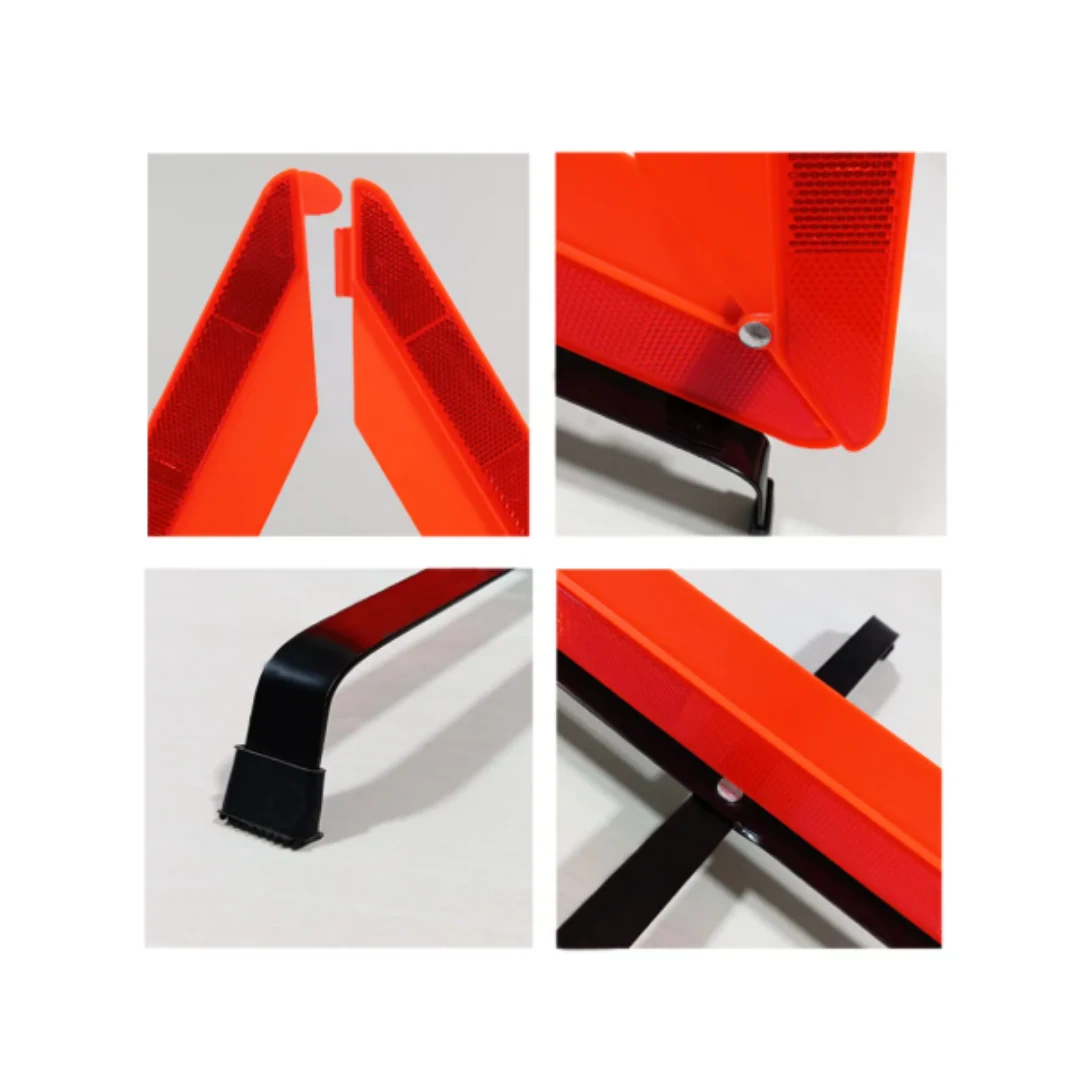 Triángulo de Emergencia 43 cm – Base de Acero, Color Naranja